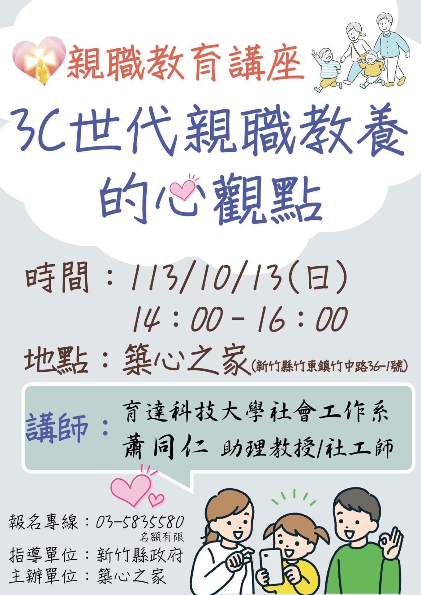 育達科技大學 造橋鄉學府路168號, 苗栗縣育達科技大學蕭同仁助理教授/社工師來為大家分享「世代親職教養的心觀念」