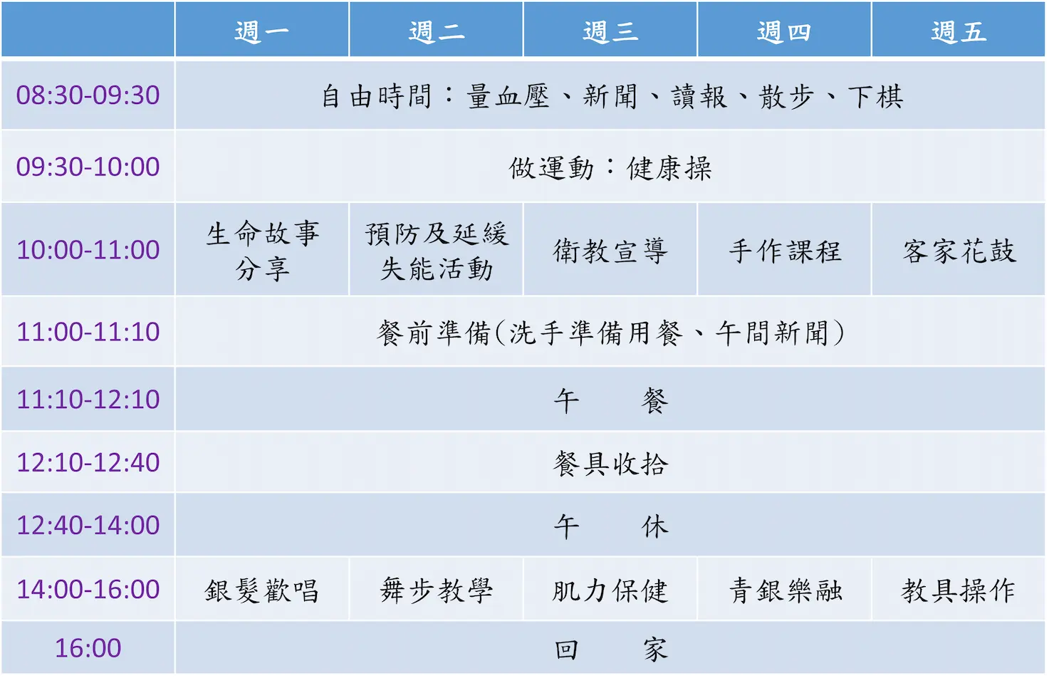 築心長照C級巷弄關懷據點2025年每週課表